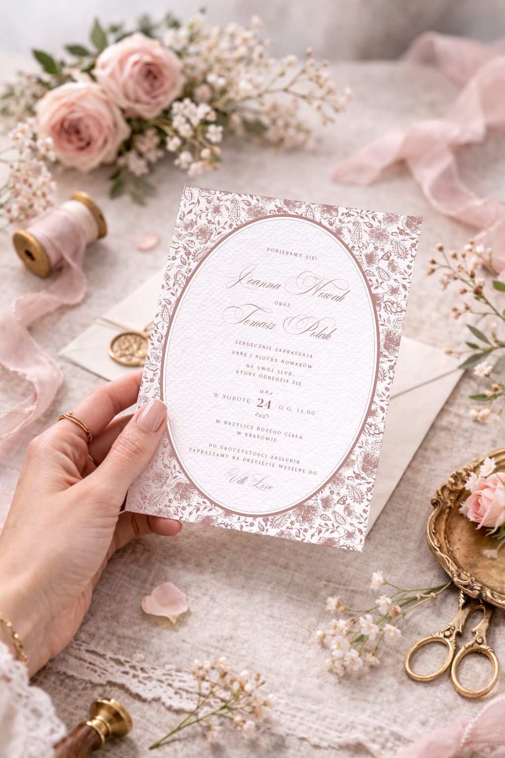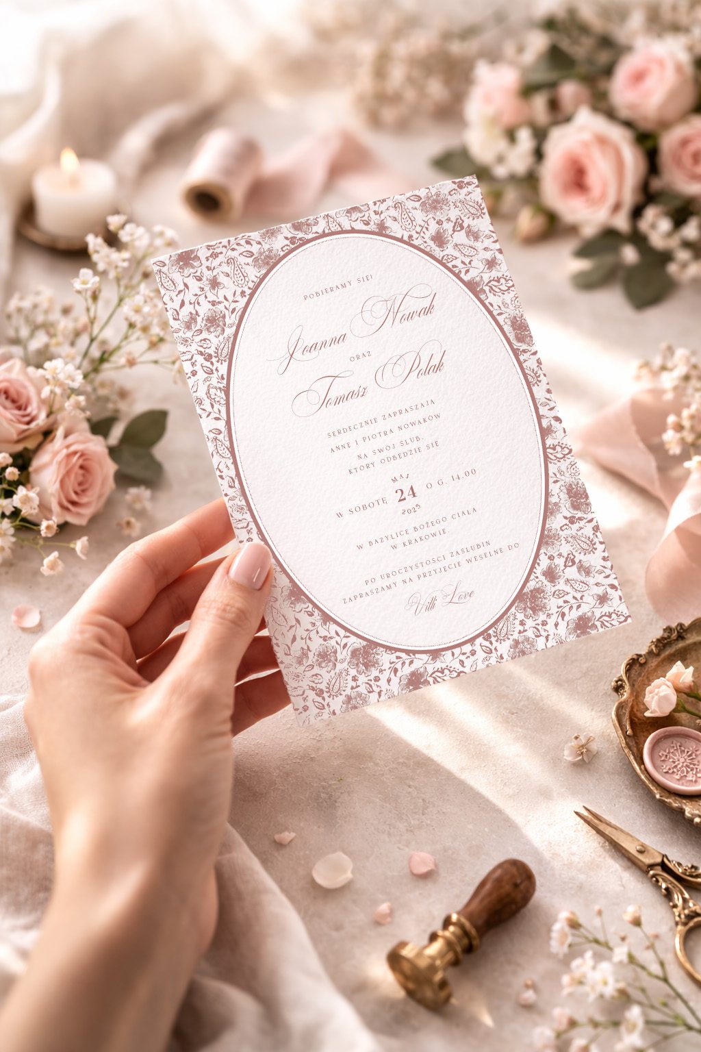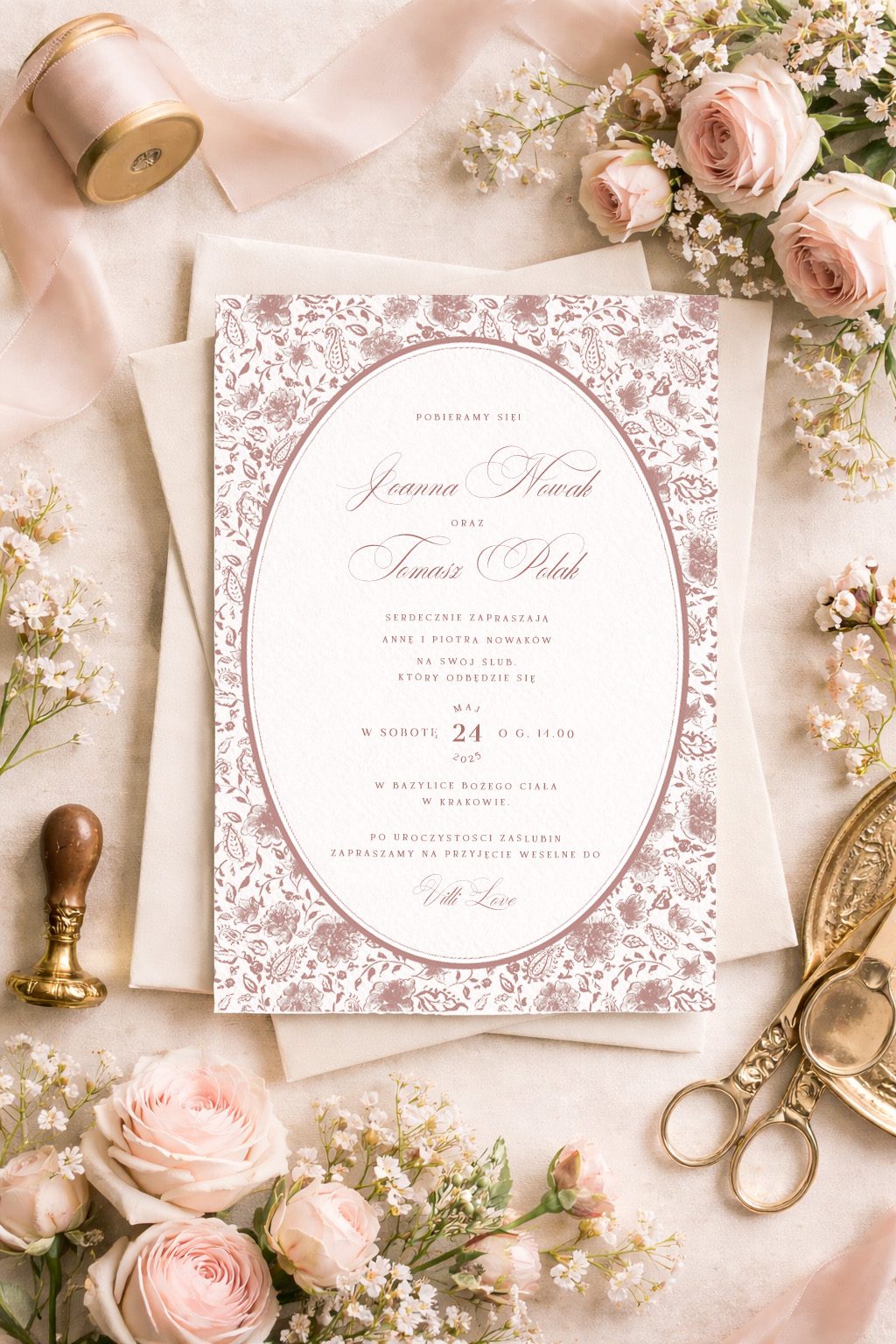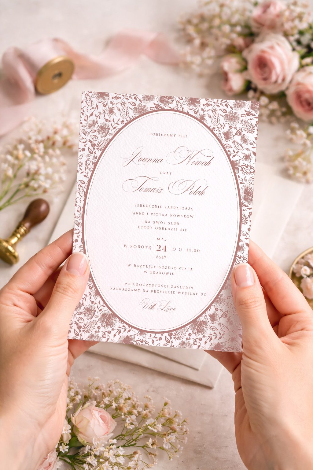 Przesyłamy Wam wersję cyfrową zaproszenia z Waszymi danymi. Papeterię drukujemy po Waszej akceptacji.