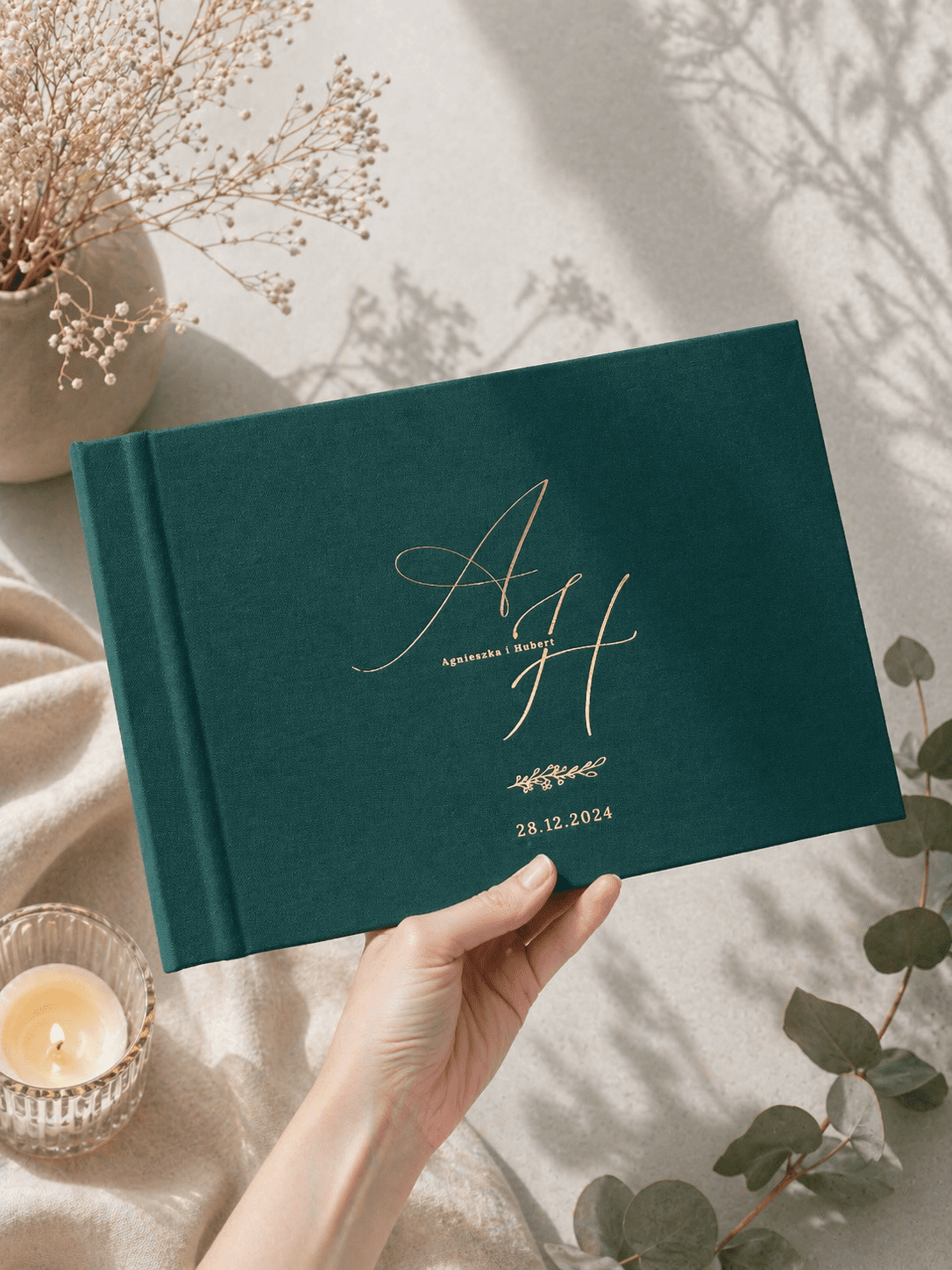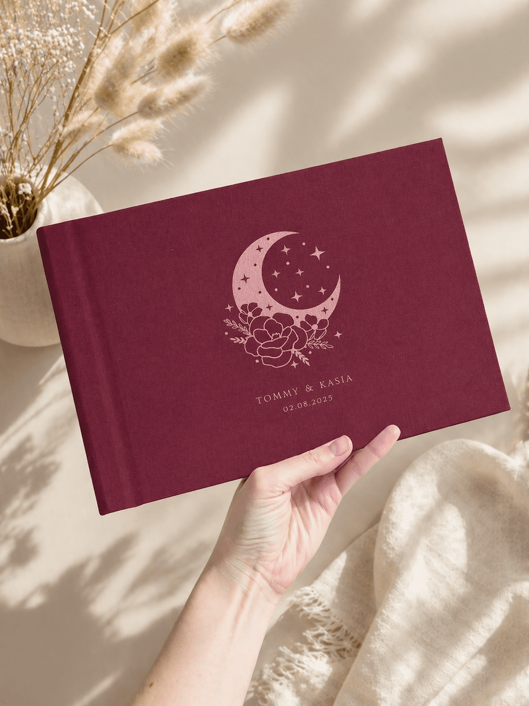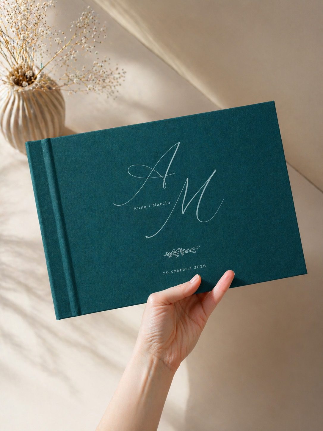 Każda księga tworzona jest indywidualnie na zamówienie. Dla każdego klienta projektujemy okładkę oraz pierwszą stronę księgi z dedykacją (dedykacja na pierwszej stronie opcjonalna). To Wy wybieracie kolor obicia, rodzaj materiału, ilość oraz kolor kart w środku!